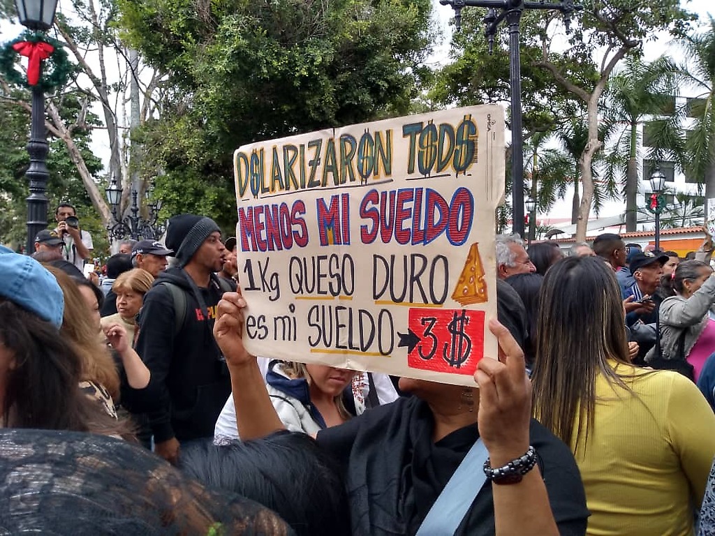A version of the performance by the Chilean group Las Tesis was adapted by the teachers, pointing out the strike-breaking role played by ex-teacher and Education Minister Aristobulo Isturiz. “You are the exploiter”, yelled out the teachers against the Chavista bureaucrat. Handwritten signs held by protesters had messages such as “Maduro and Aristobulo are killing us through hunger” and “A dignified wage is a human right”. One of the central demands is a living wage that corresponds to what is established in article 91 of the Venezuelan Constitution, which states that the minimum wage should be calculated based on the monthly cost of the basket of basic goods and services, currently appraised at 271 dollars. The document written by the teachers’ assembly that called for the demonstration incorporated other demands, such as the recovery of social security, state investment in education infrastructure, food programs for students and an end to the persecution against teachers by bosses and government-appointed supervisors.